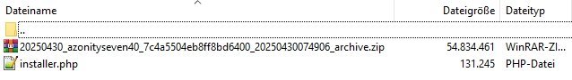 Diese beiden Dateien (*.zip und *.php) benötigen wir. Der Name der ZIP-Datei ist immer anders, denn hier wird das Datum, der Titel und ein spezieller Code eingetragen.