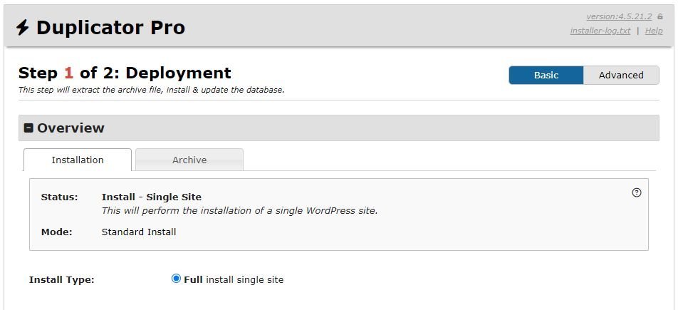 Klicke dann auf den Button. Die Webseite wird jetzt komplett fertig installiert.