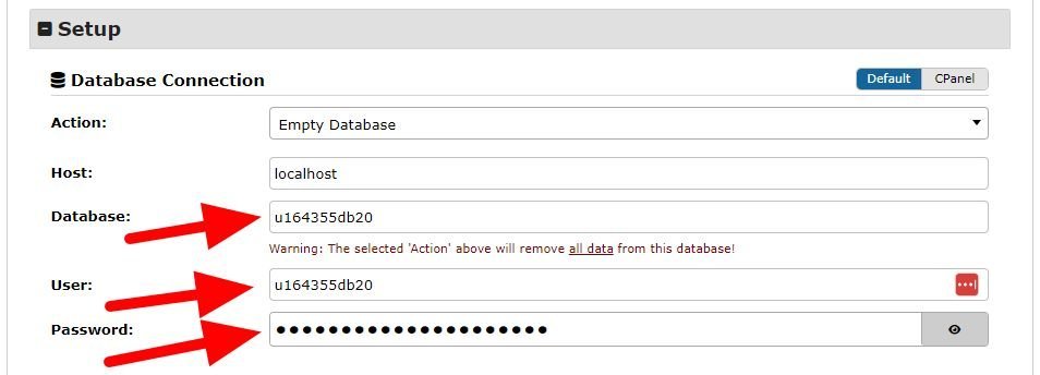 Bei Deinem Webhoster legst du jetzt noch eine MySQL Datenbank an. Notiere Dir hier folgende Punkte, welche wir für die Installation benötigen
